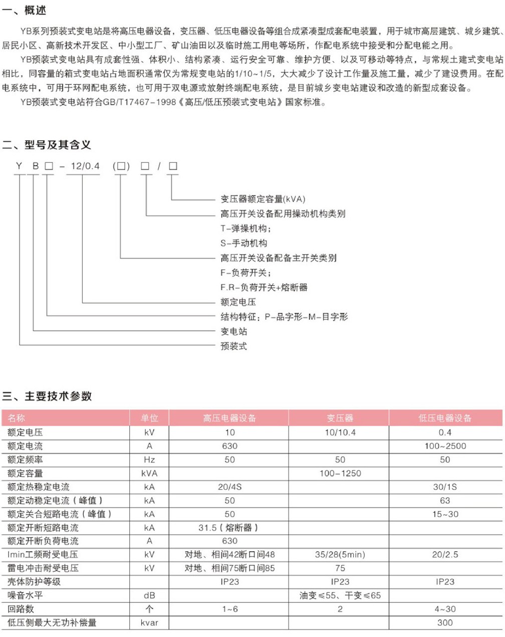 YB□-12/0.4(歐式)型戶外預(yù)裝式變電站
